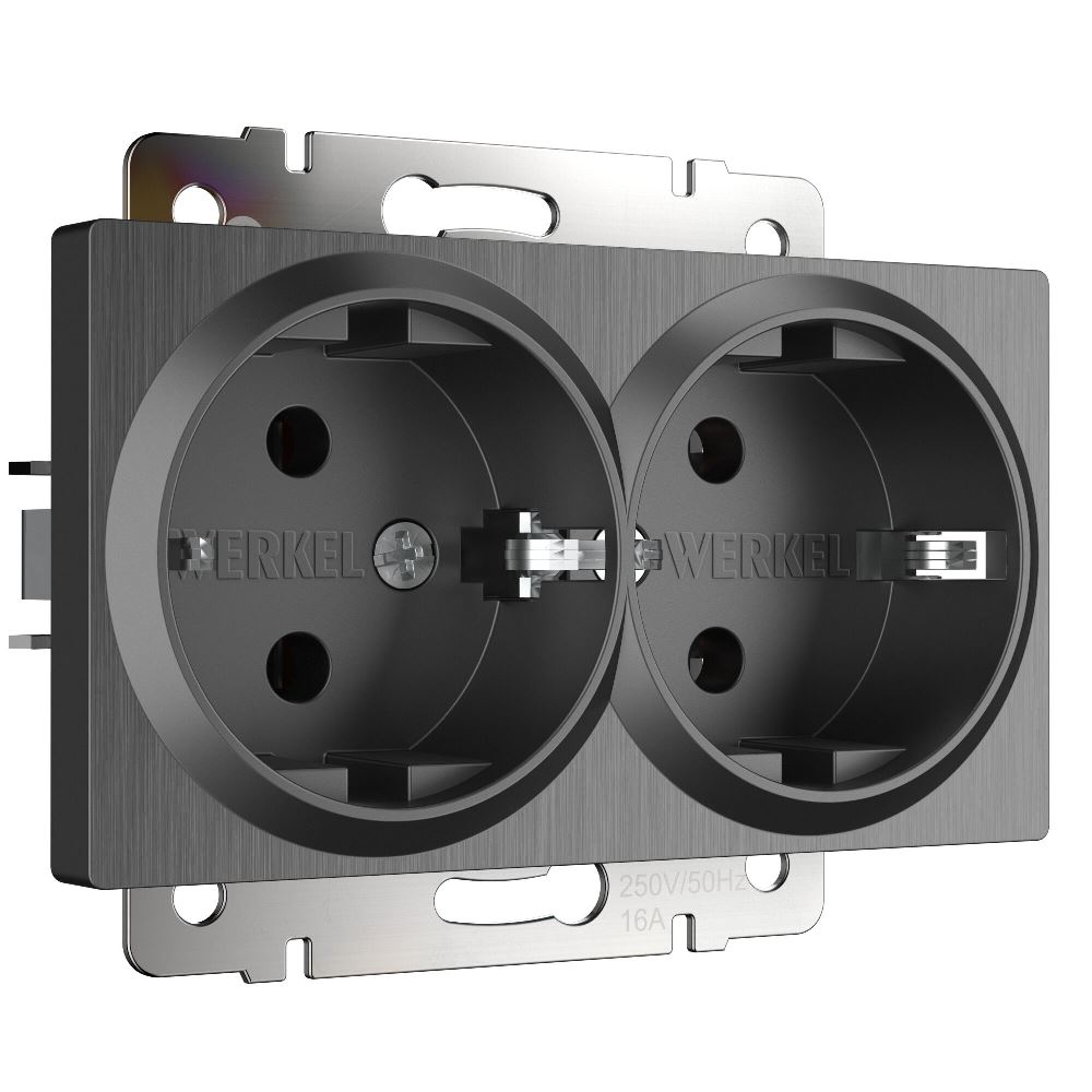 Розетка встраиваемая двойная Werkel с заземлением Графит рифленый W1172004