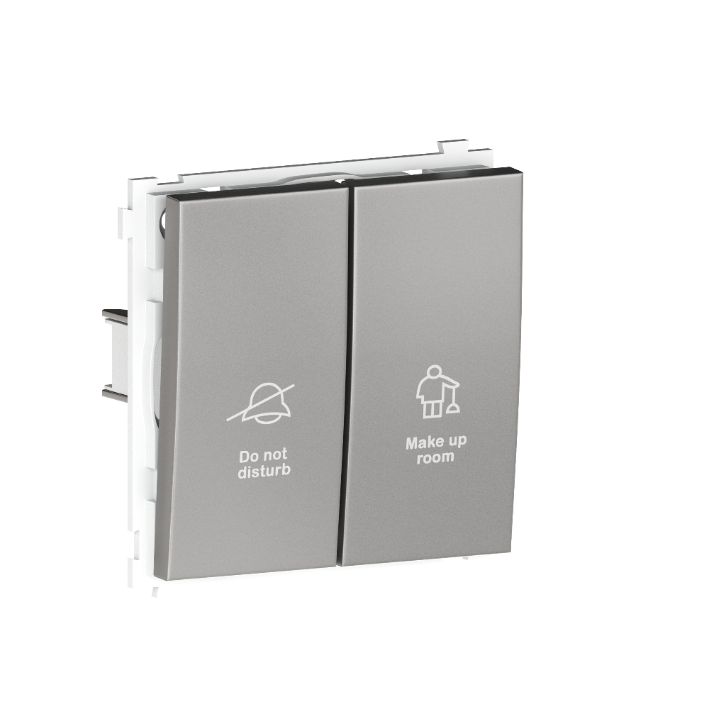 Выключатель двухклавишный встраиваемый Donel R98 Metal с символами DND/MUR Благородная сталь DA25800-DA888ES