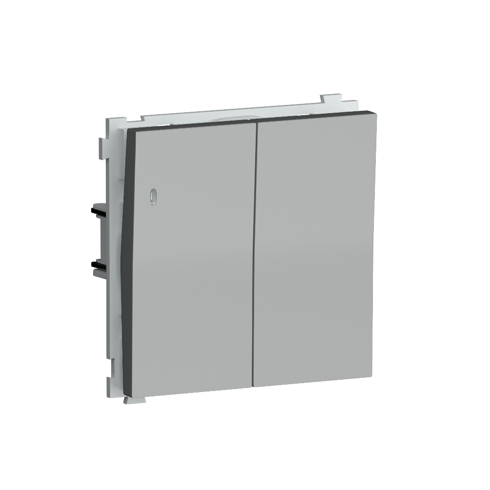 Выключатель двухклавишный встраиваемый Donel R98 с подсветкой Алюминий матовый DA03105-DA28526