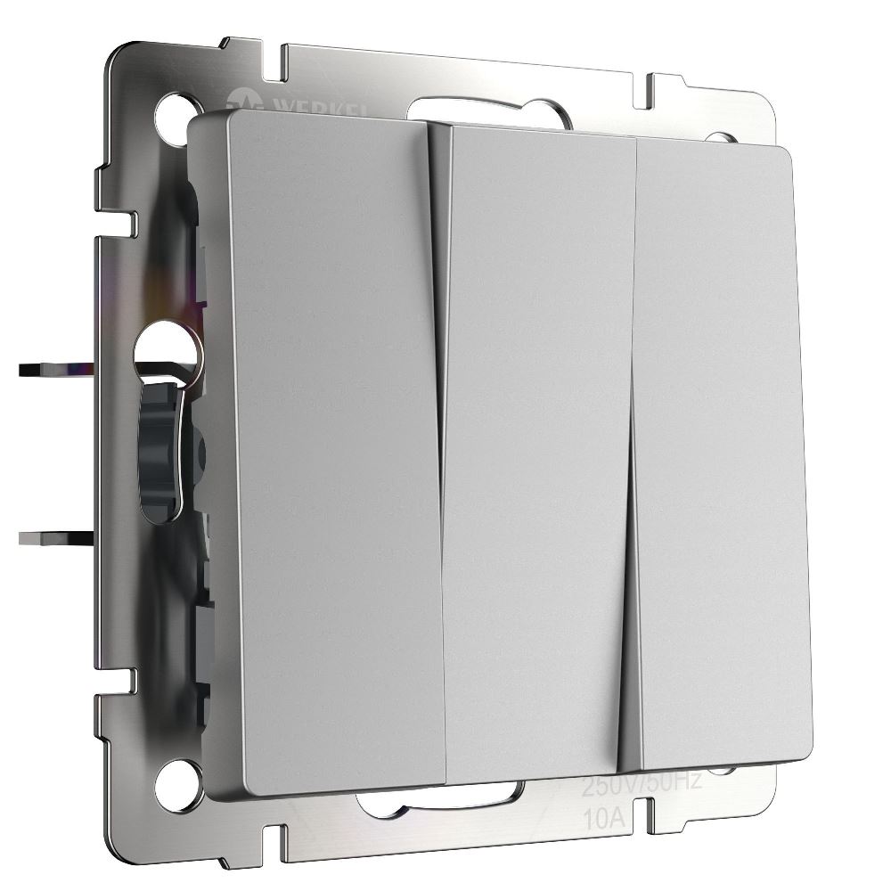 Выключатель трехклавишный встраиваемый Werkel Серебряный матовый W1130065